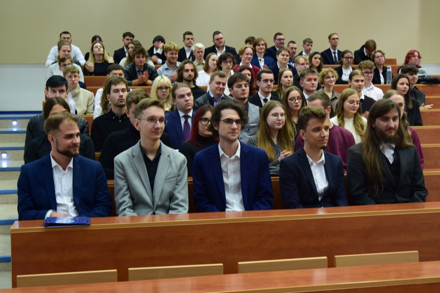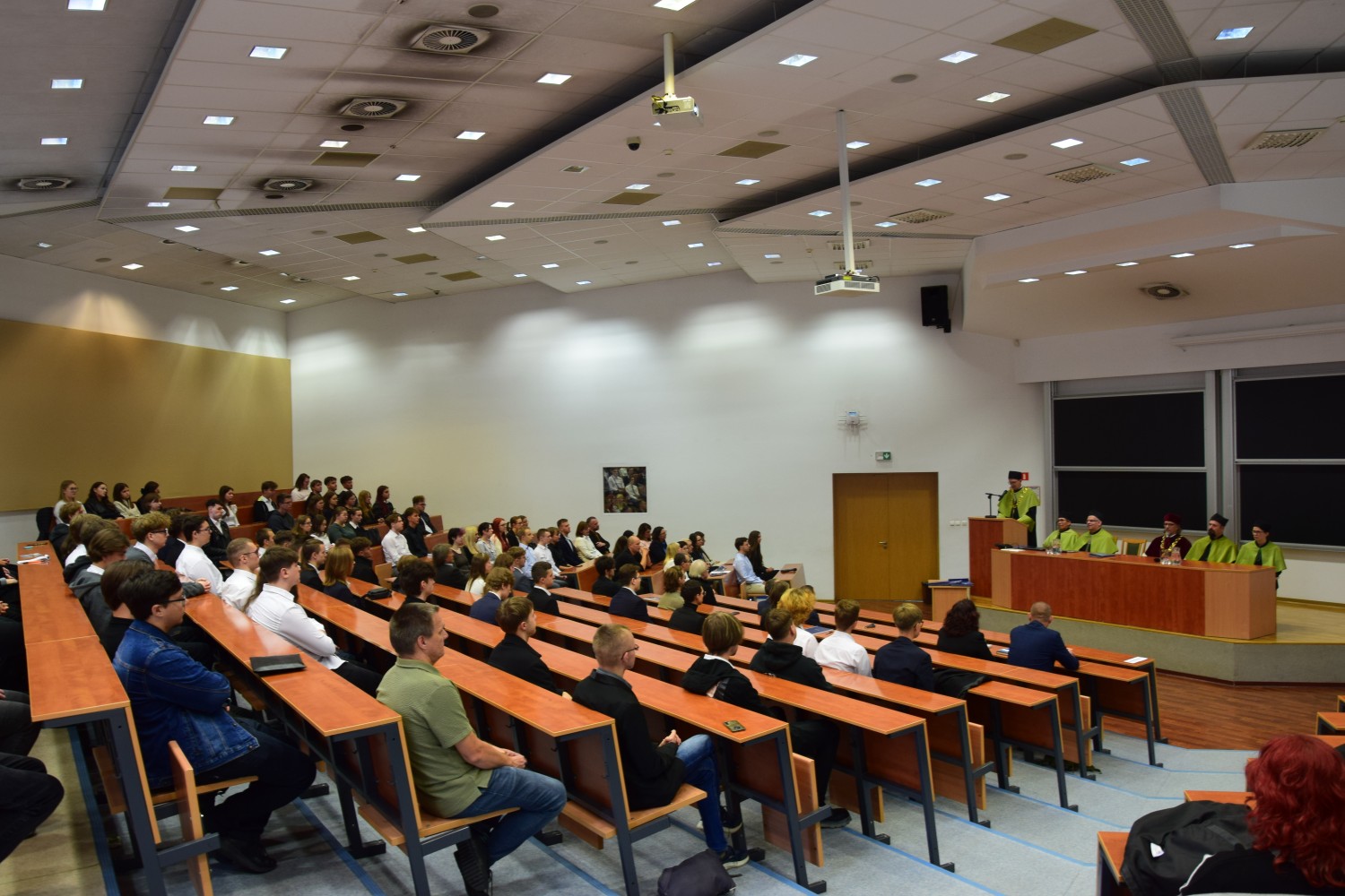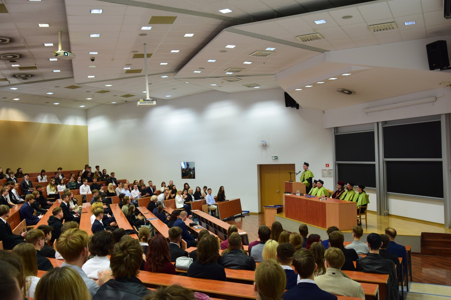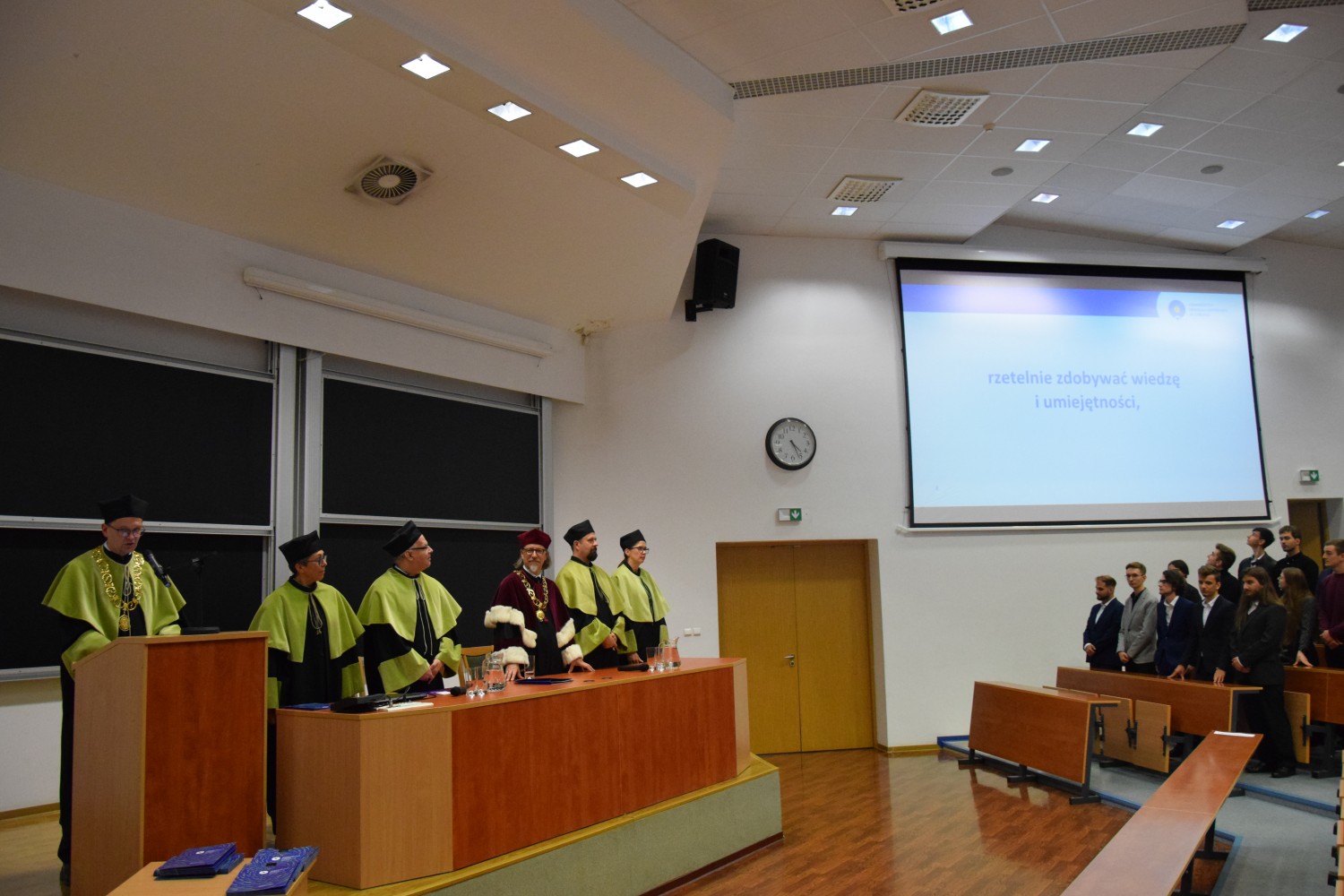 Oprócz tradycyjnego złożenia przysięgi i przyjęcia w poczet studentów, spotkanie było także okazją do zapoznania się z pracownikami, historią i strukturą wydziału. Zgromadzeni mieli okazję do wysłuchania swojego pierwszego wykładu na studiach, w którym zagadnienie losowości przybliżył dr Bartosz Ziemkiewicz - prodziekan ds. kształcenia.