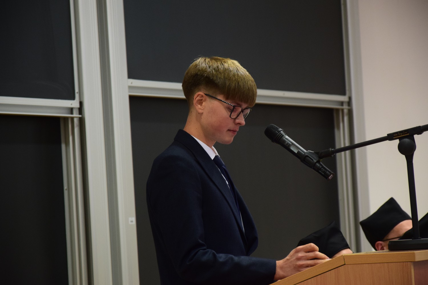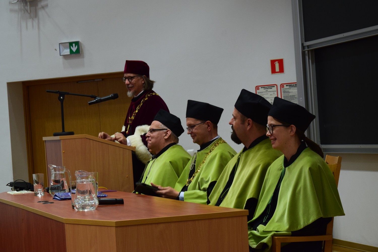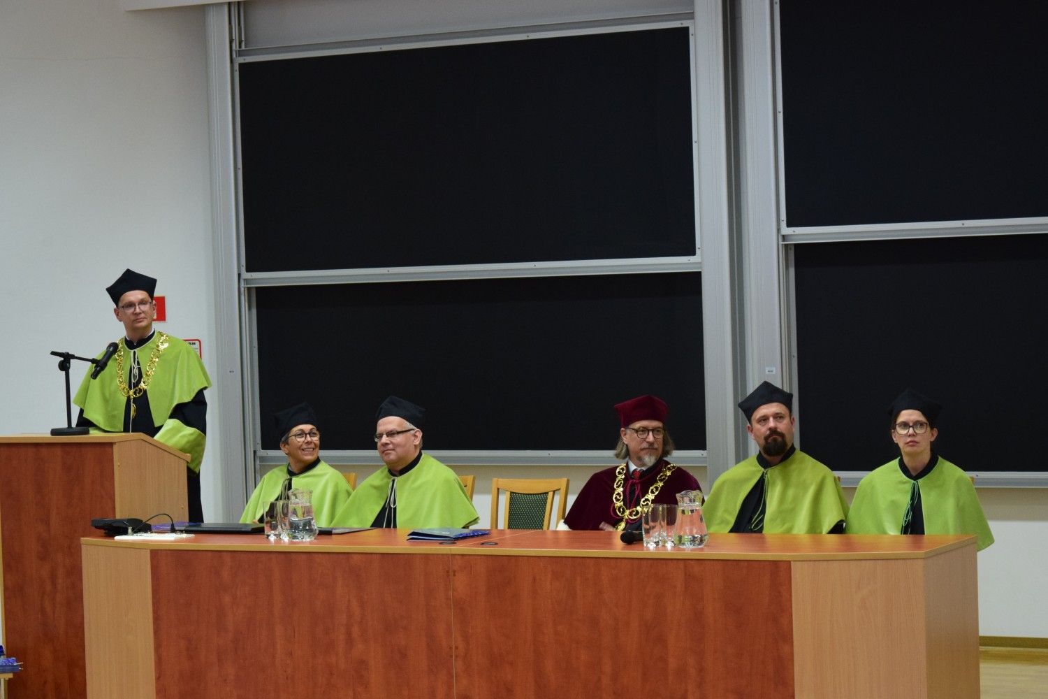 Uroczystości przewodniczył dziekan naszego Wydziału prof. dr hab. Grzegorz Bobiński. Swoją obecnością immatrykulację zaszczycił dr hab. Adam Kola, prof. UMK - prorektor ds. nauki, który podkreślił zalety studiowania na UMK oraz samego Torunia.