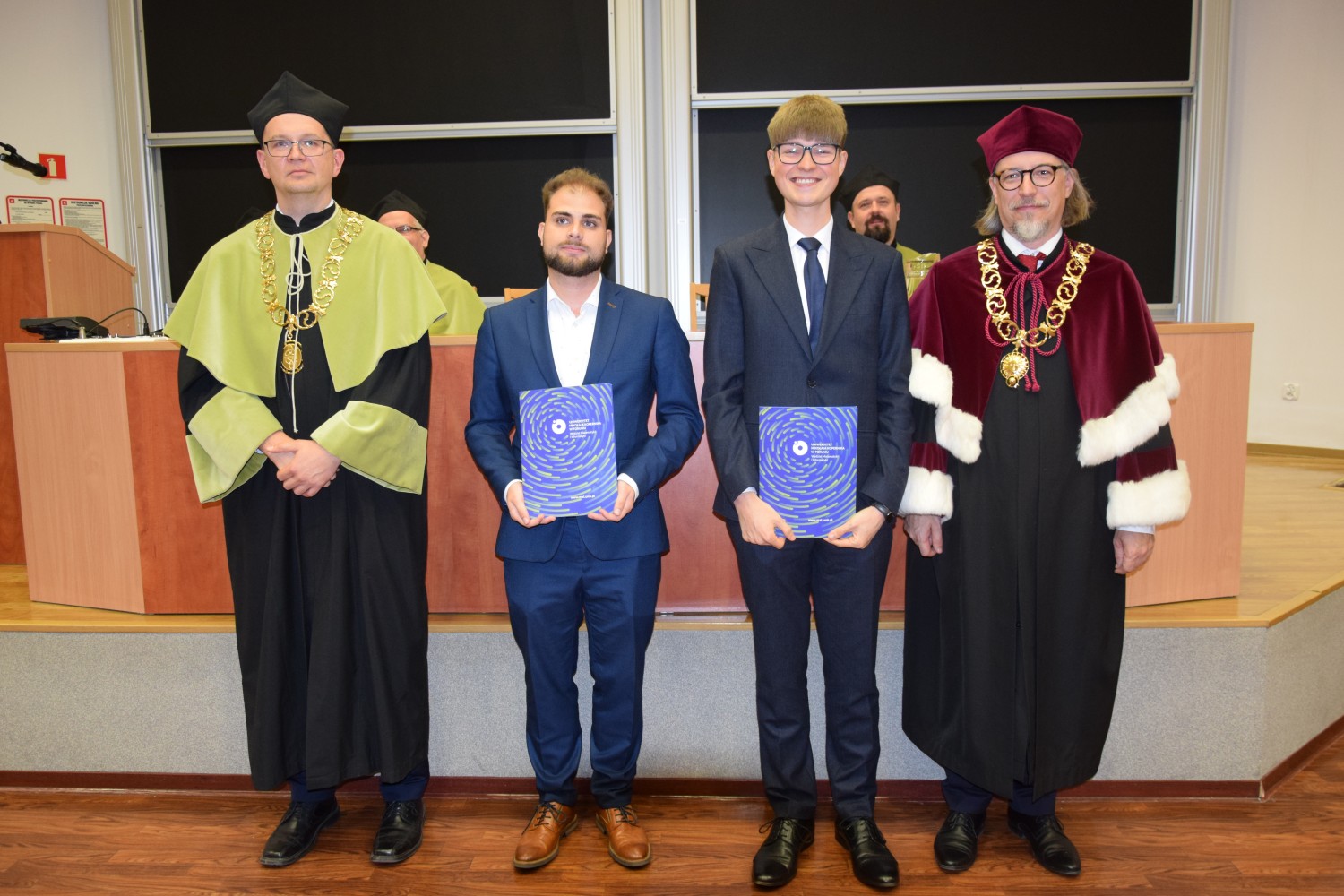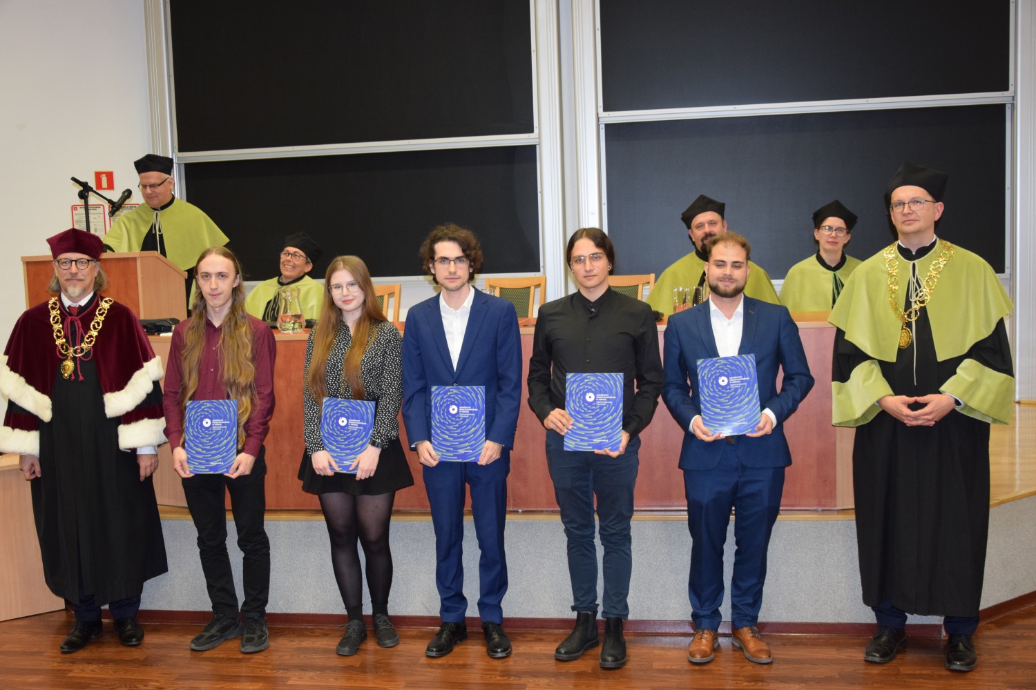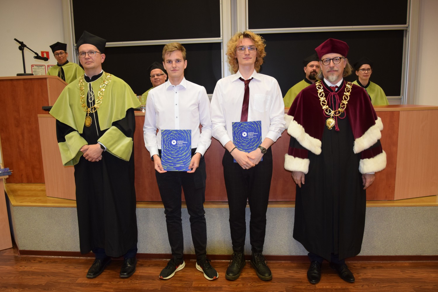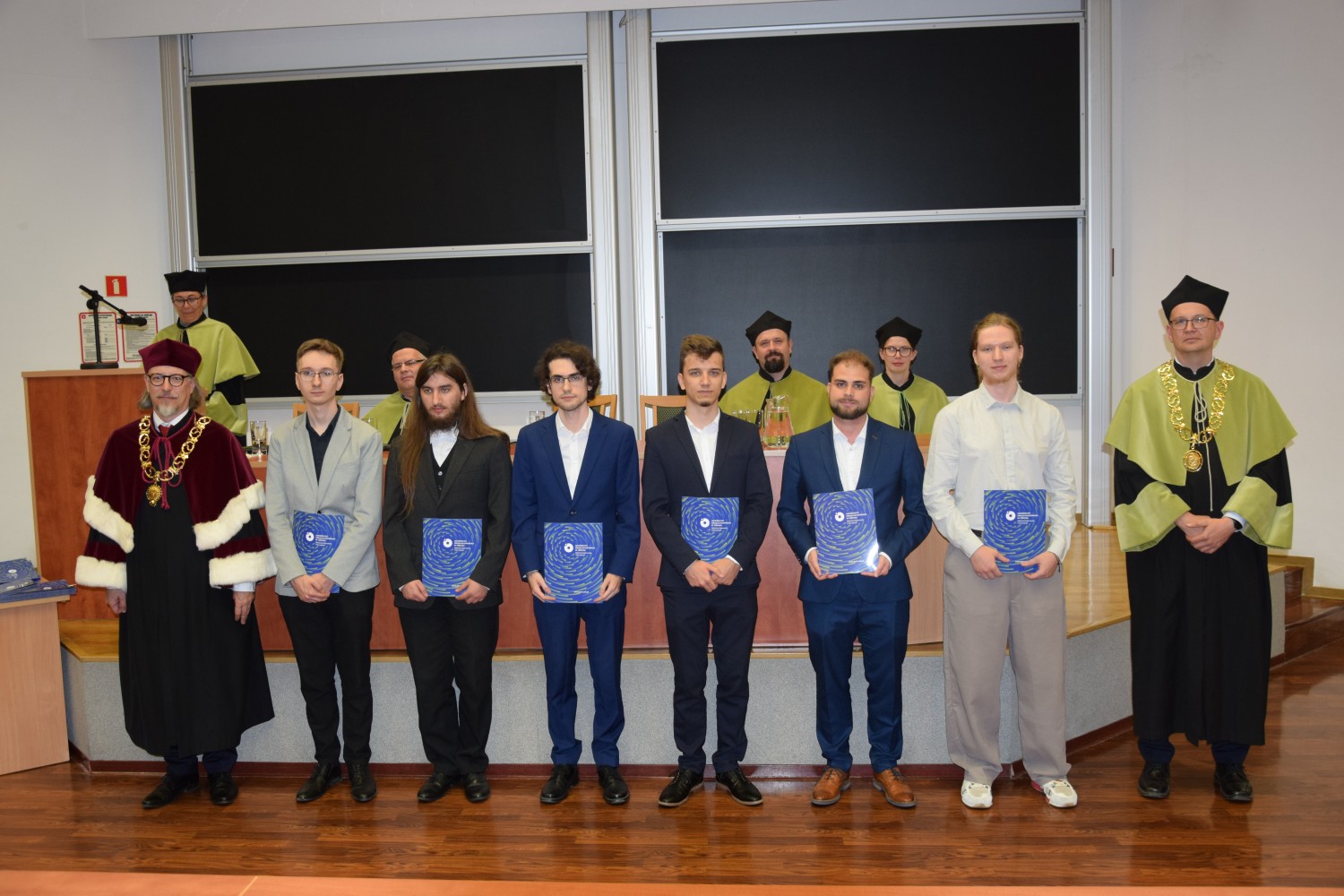 W czasie immatrykulacji wręczono również Nagrody Dziekana Wydziału Matematyki i Informatyki dla studentów Informatyki za konkurs Programowania Zespołowego oraz dla studentów Matematyki Stosowanej za konkurs Projektów Zespołowych z roku 2024/25.