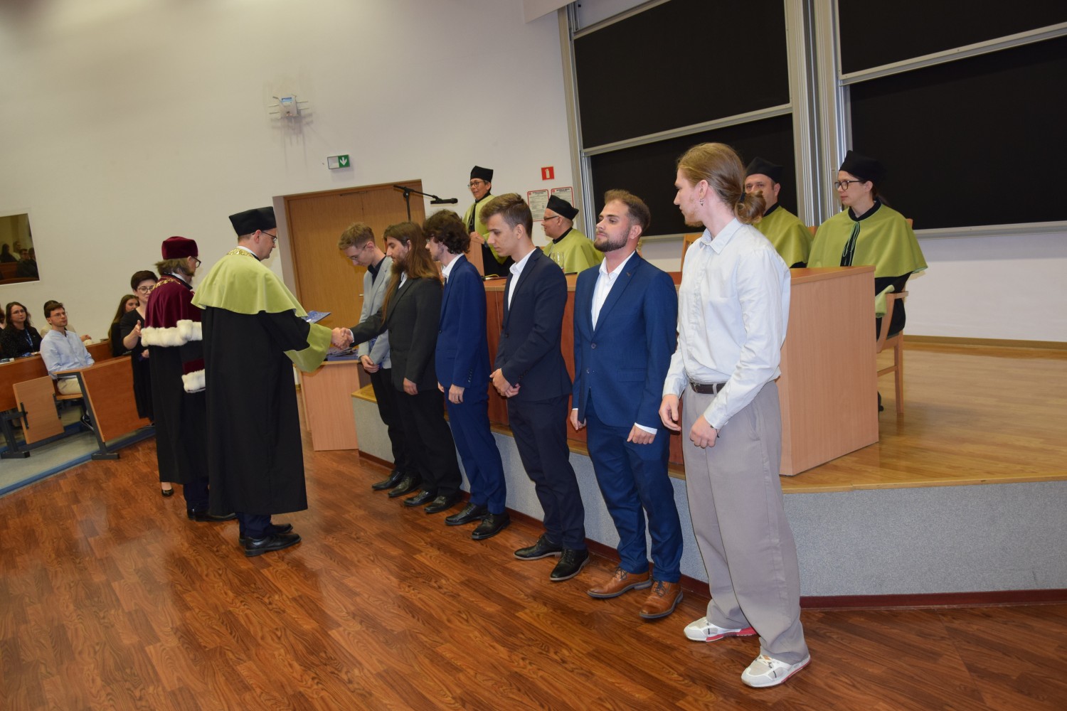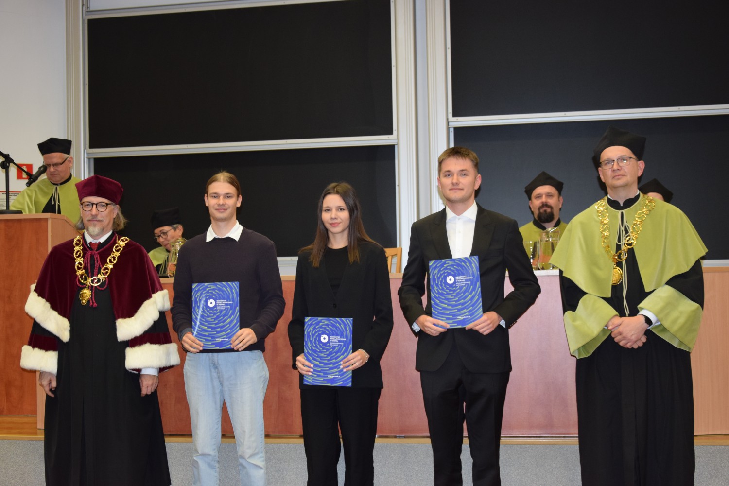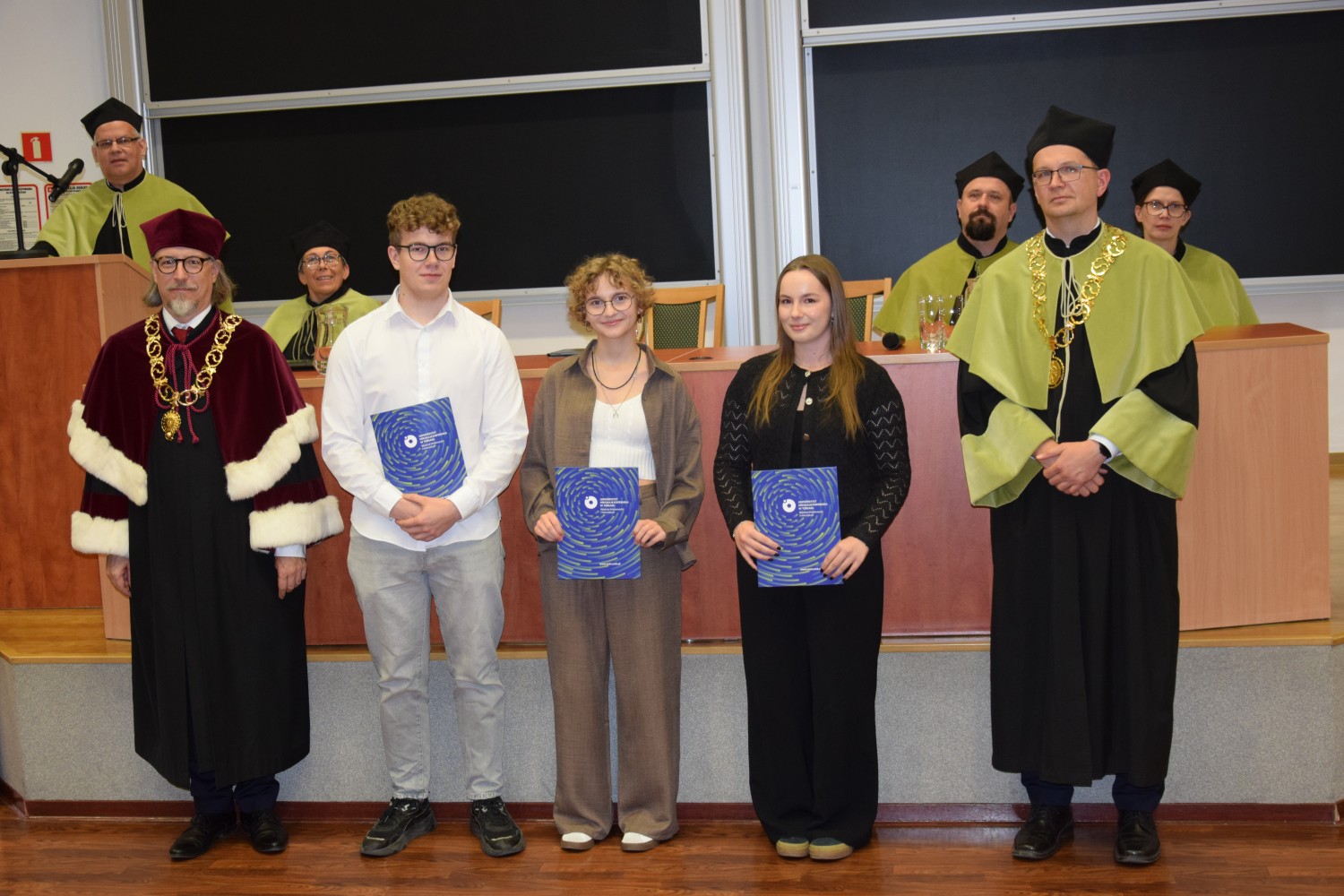 Podczas inauguracji wręczono także wyróżnienia studentom i absolwentom za wybitne osiągnięcia w roku akademickim 2024/25. W grupie nagrodzonych znaleźli się studenci, którzy wykazali się zdobywaniem medali w zawodach i konkursach informatycznych lub matematycznych oraz osoby wyróżniające się osiągnięciami w nauce, udziałem w szkołach i konferencjach naukowych, pracą naukową lub bardzo dobrą średnią ocen. Dziekan wyróżnił także studentów zaangażowanych w działalność Samorządu WMiI oraz promocyjno-organizacyjną na rzecz Wydziału.