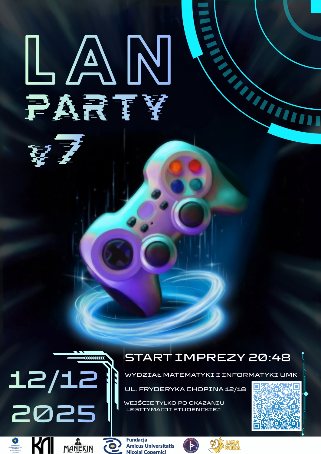 Zapraszamy wszystkich studentów na Otrzęsinowe LAN Party v7, które odbędzie się 12 grudnia 2025 r. na Wydziale Matematyki i Informatyki.