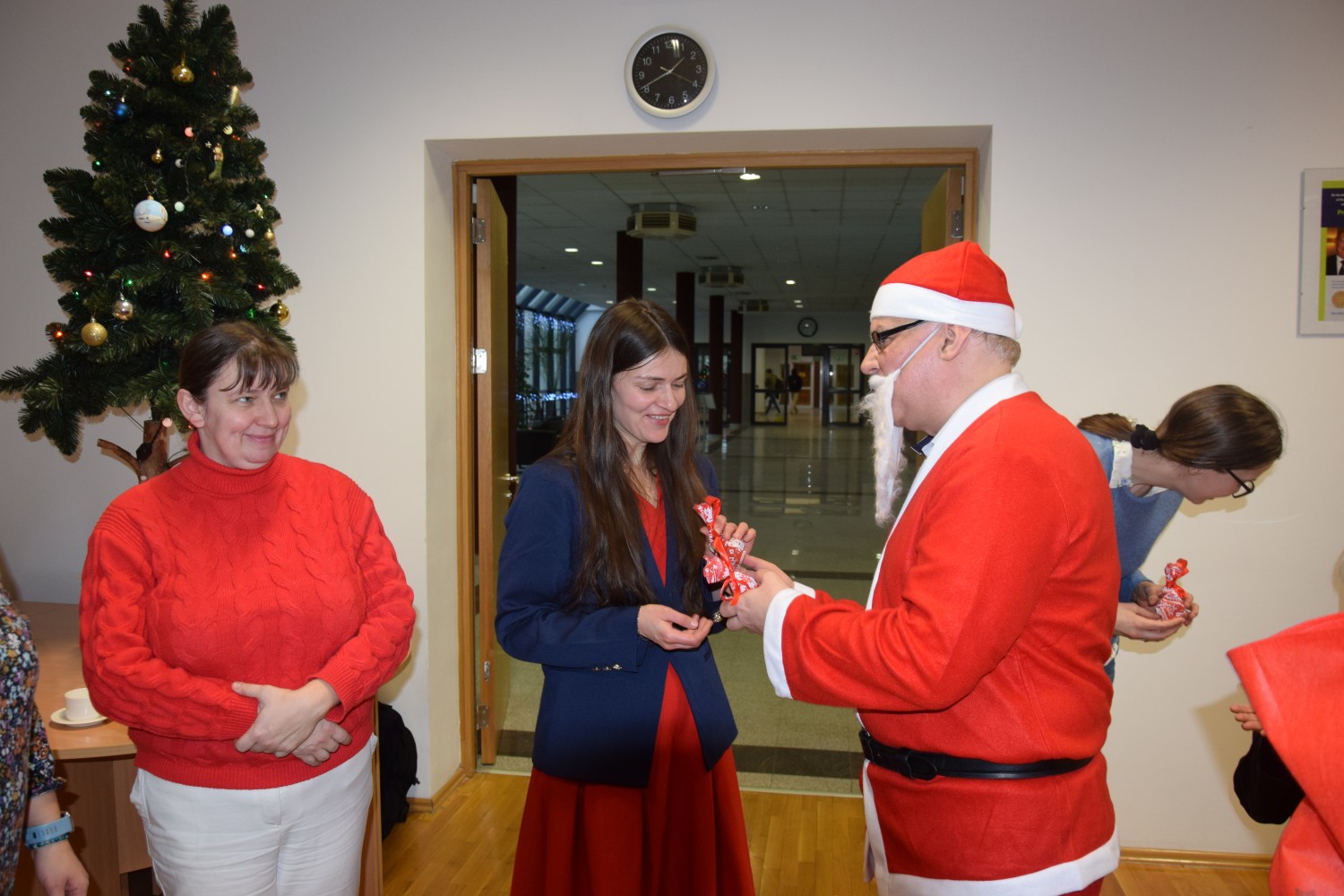 Dużą popularnością cieszyła się nowa wydziałowa ścianka foto, na tle której można było zrobić sobie pamiątkowe zdjęcie. W roli głównej wystąpił tam Święty Mikołaj, który nie tylko cierpliwie pozował do wspólnych fotografii, ale także rozdawał wszystkim obecnym drobne upominki.