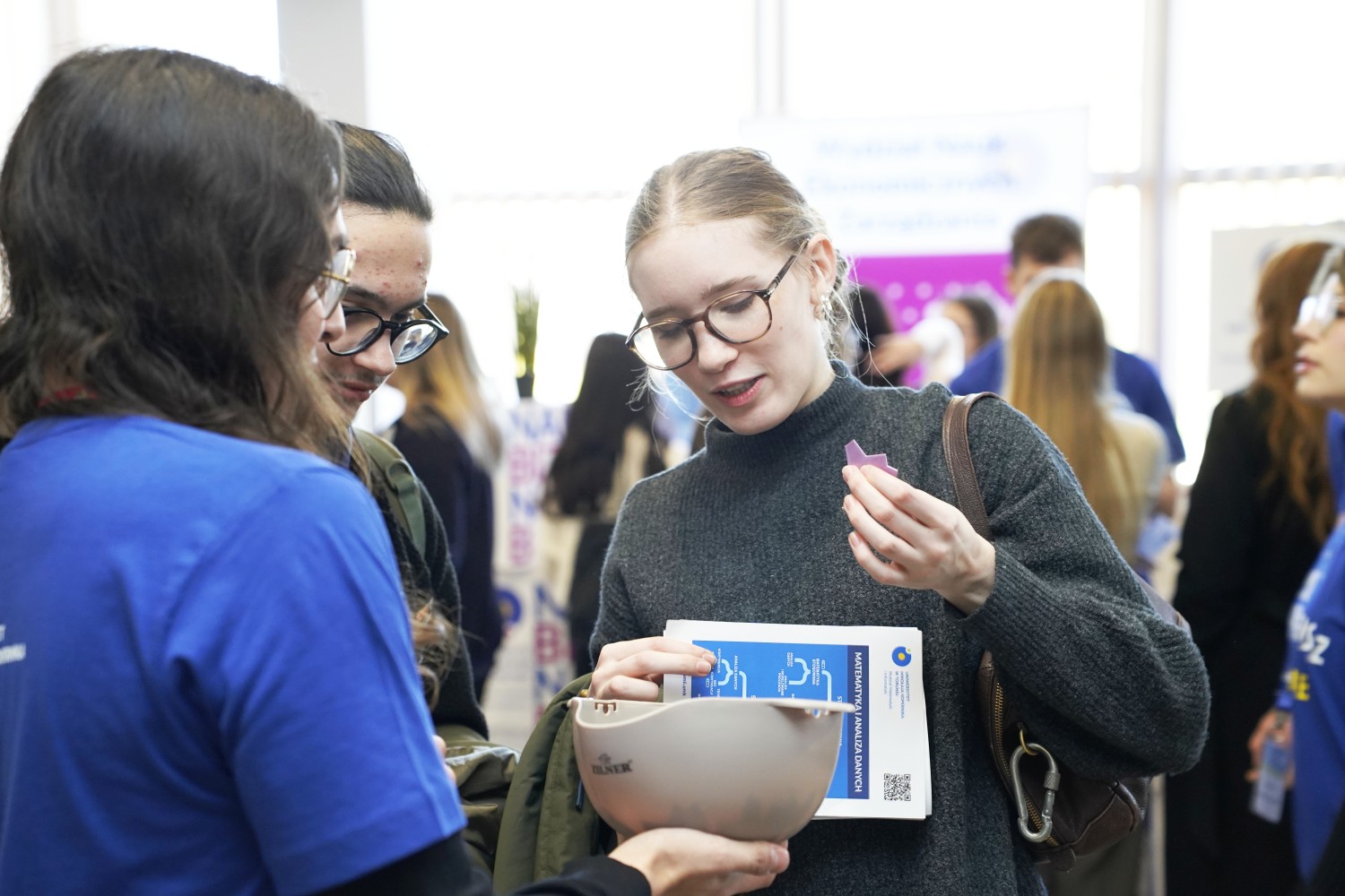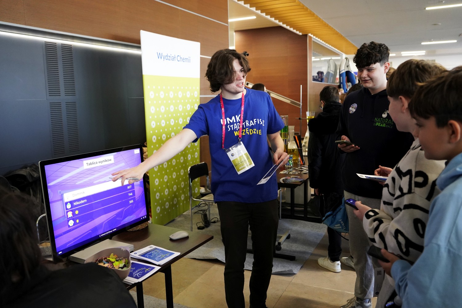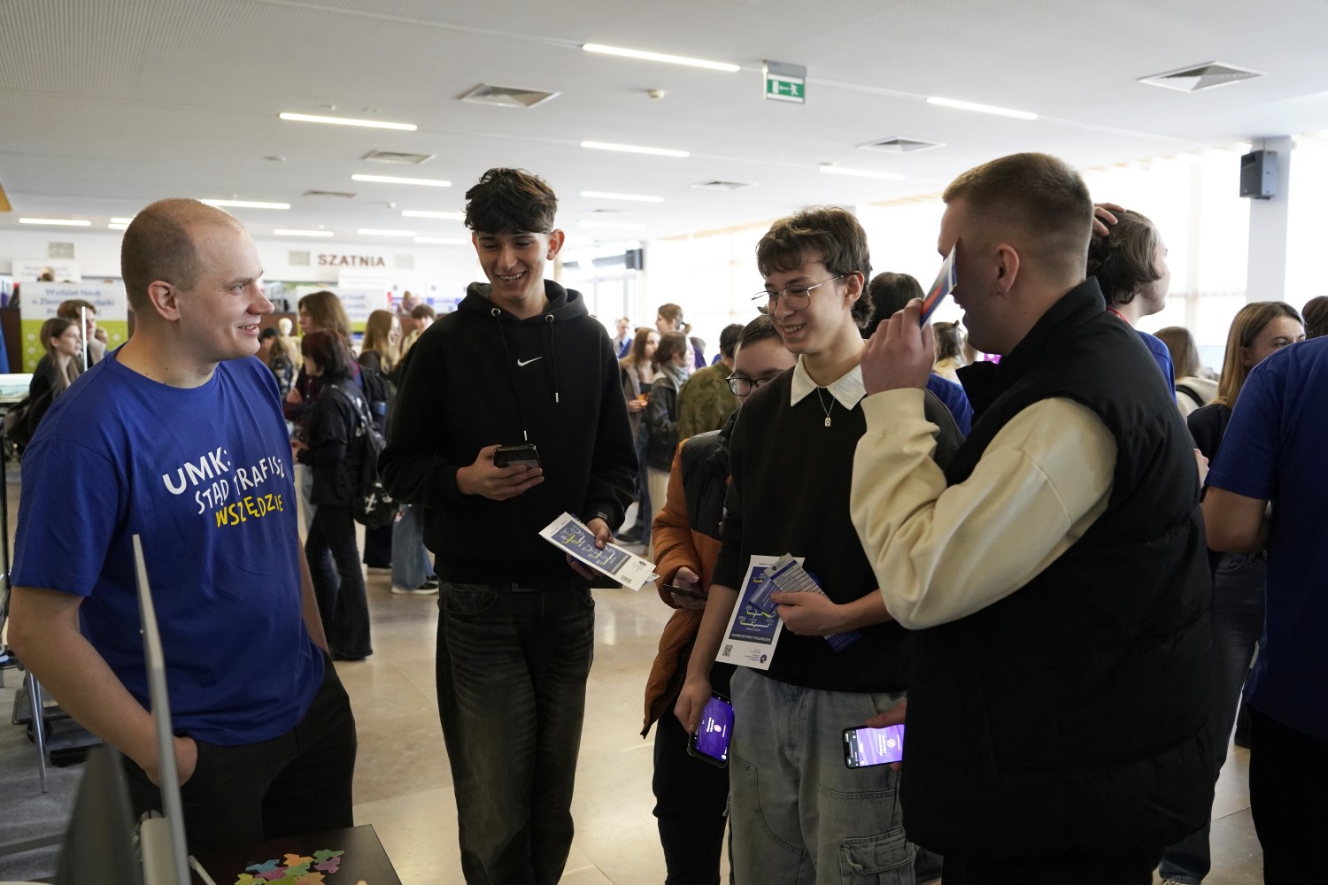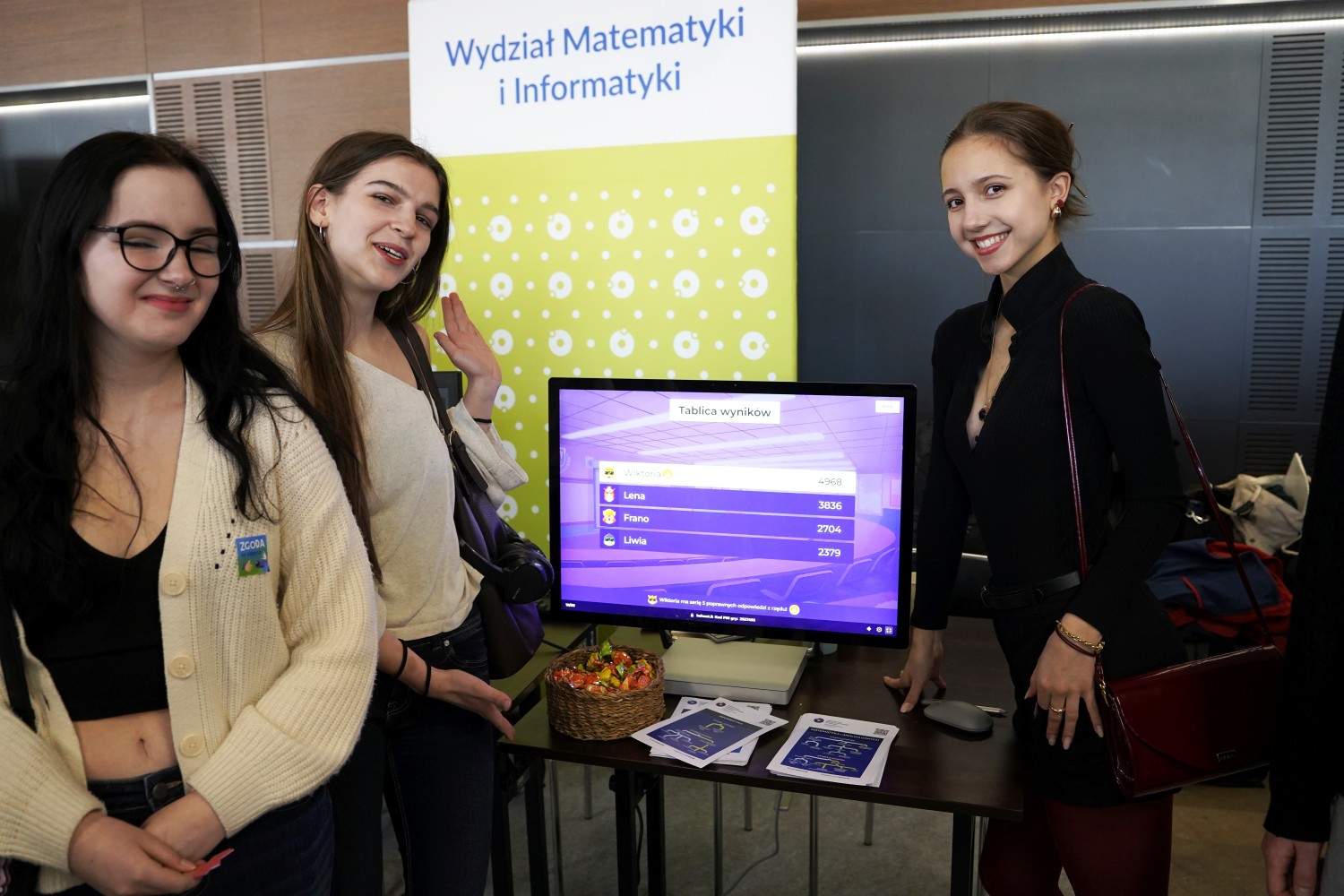 Wydział Matematyki i Informatyki UMK był reprezentowany przez aktywną grupę studentów, doktorantów i pracowników. W wielu bezpośrednich rozmowach z uczniami nasi studenci bardzo dobrze poradzili sobie z przedstawieniem kierunków na WMiI, odpowiadali na pytania i dzielili się praktycznymi informacjami o życiu studenckim na Wydziale.