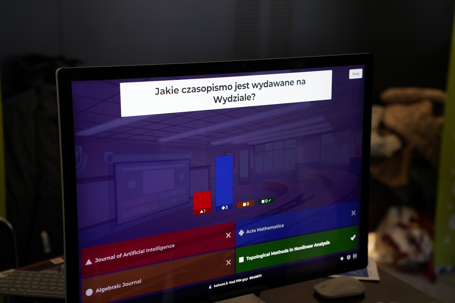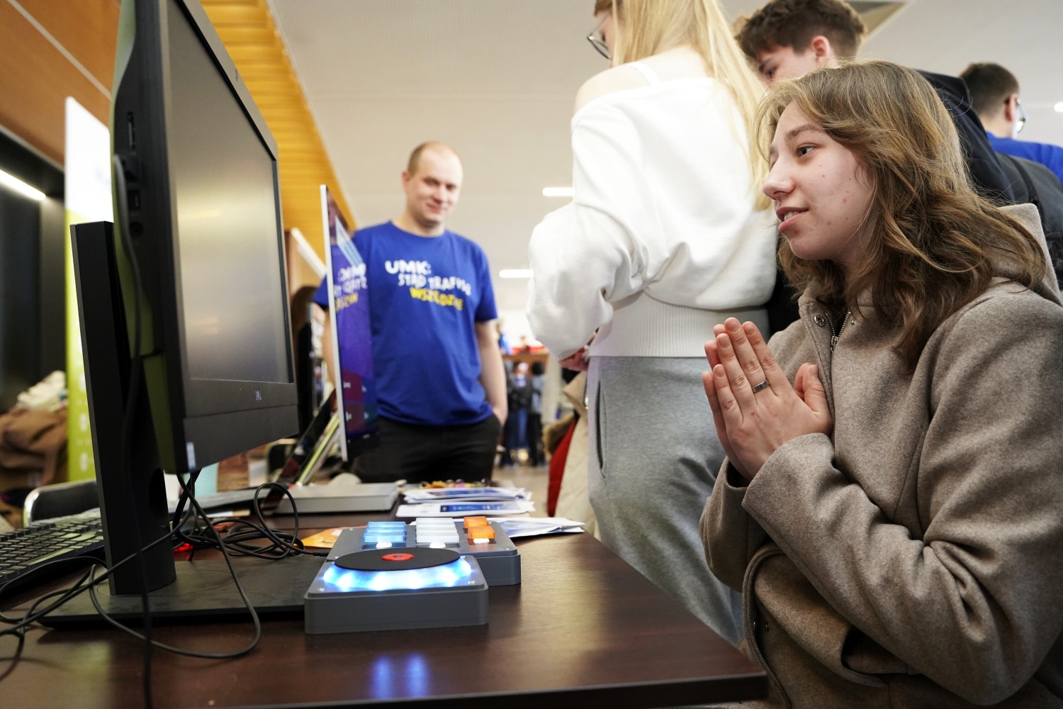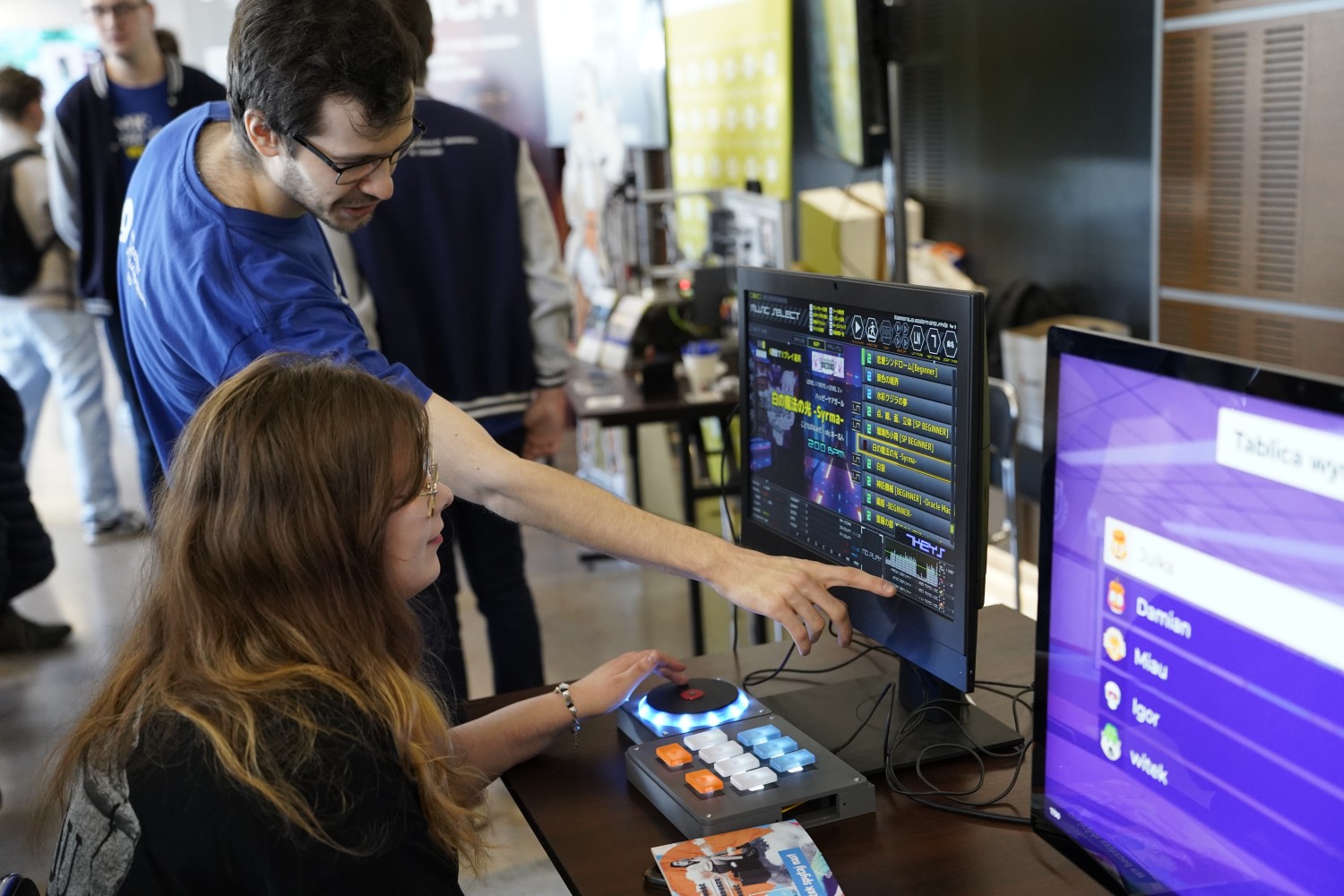 Na stoisku można było zmierzyć się z quizem wiedzy, który pozwalał w krótkiej formie lepiej poznać zalety i ofertę Wydziału. Odwiedzający chętnie próbowali swoich sił w grze zręcznościowej z kontrolerem, którego autorem jest mgr inż. Mateusz Kamiński.