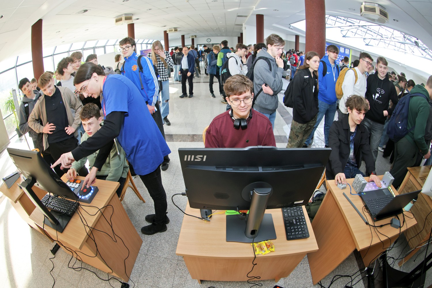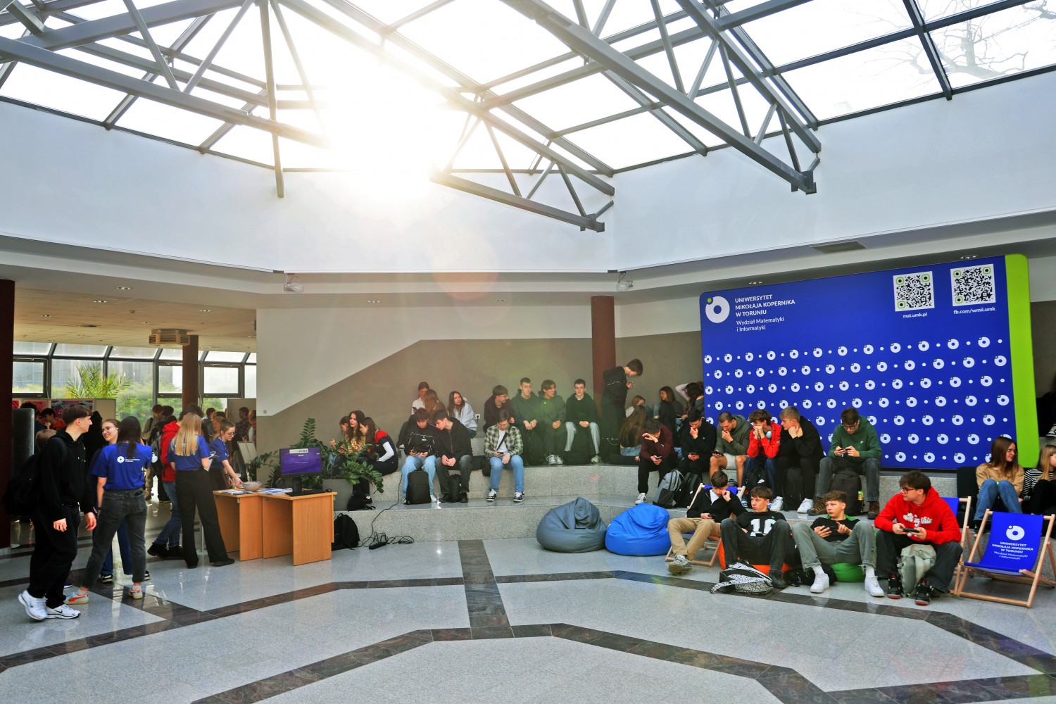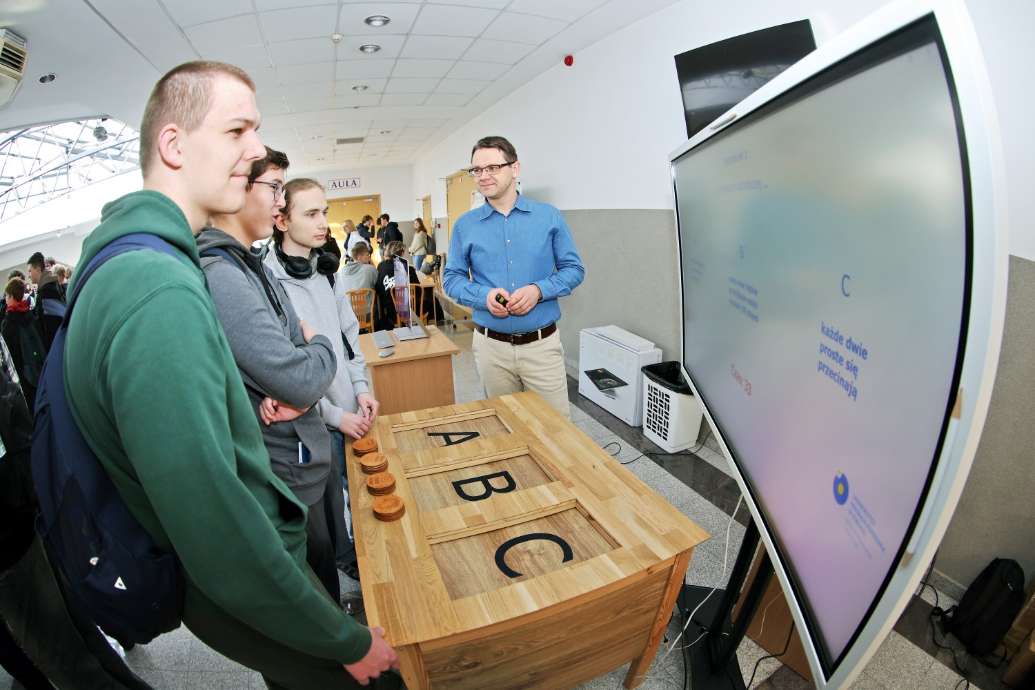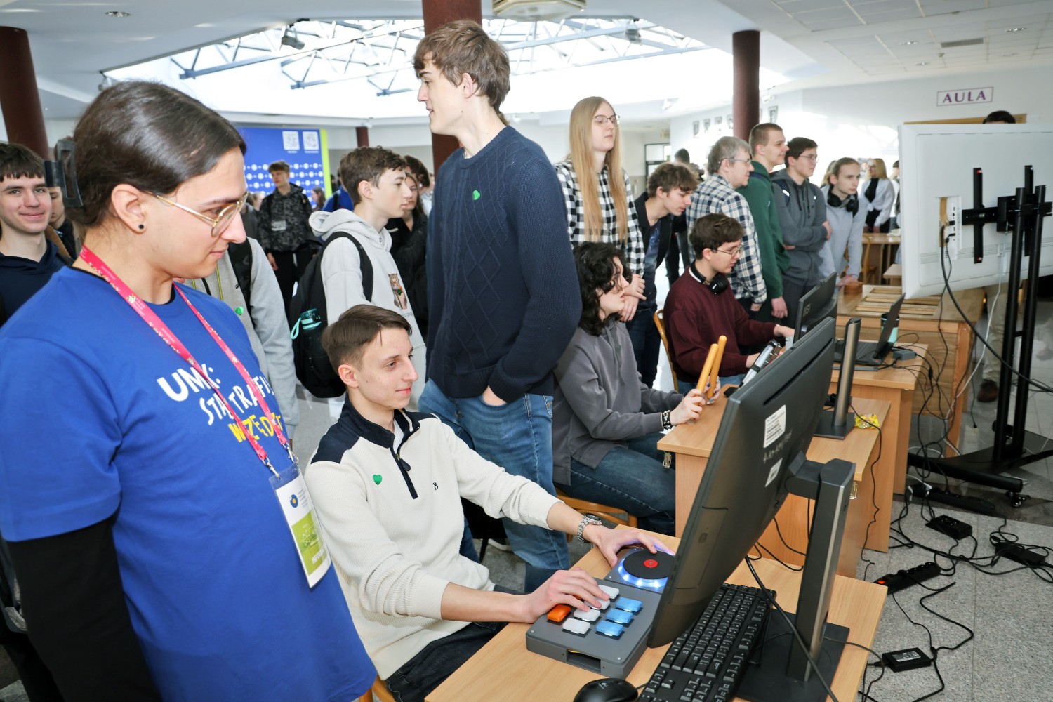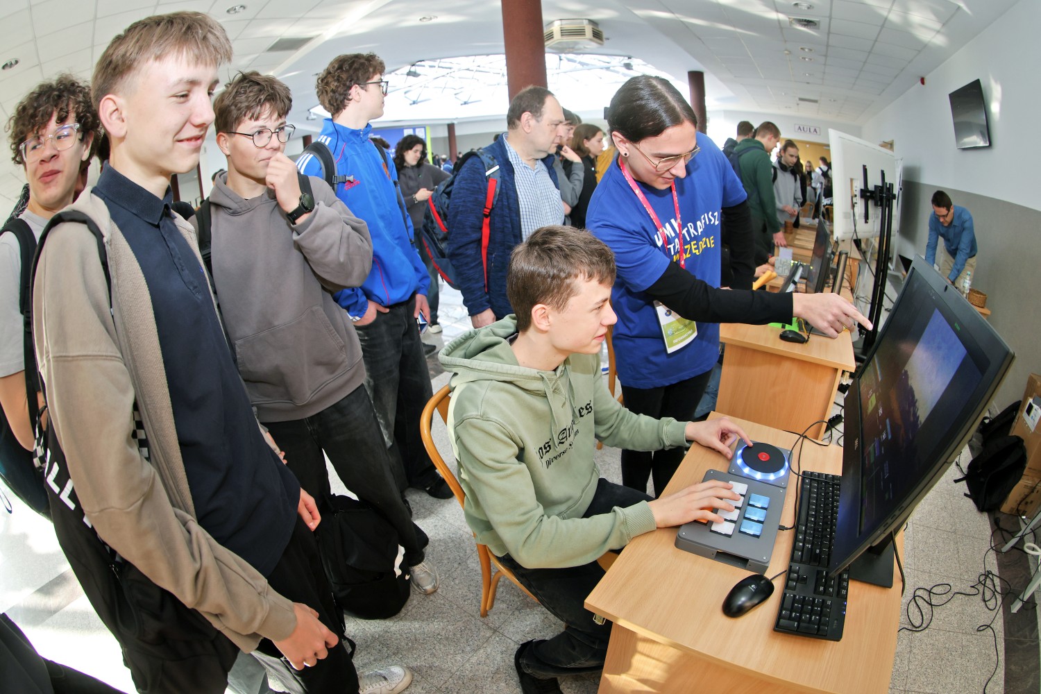 Nowością podczas jednej z edycji była możliwość skorzystania z atrakcji przygotowanych przez pracowników i studentów Wydziału. Uczniowe mogli wziąć udział w sesji plakatowej prac magisterskich studentów informatyki i porozmawiać o ofercie naszego wydziału w Strefie Kandydata. Jednak największym powodzeniem cieszyła się Strefa Rozrywki, gdzie można było zagrać w gry i zapoznać się z projektami stworzonymi w ramach przedmiotu Projektowanie i Produkcja. Można było także układać nieokresowe wzory, sprawdzić swoją wiedzę w teleturnieju Postaw na Matmę, czy przetestować wiedzę o Wydziale Matematyki i Informatyki w specjalnie przygotowanym quizie.