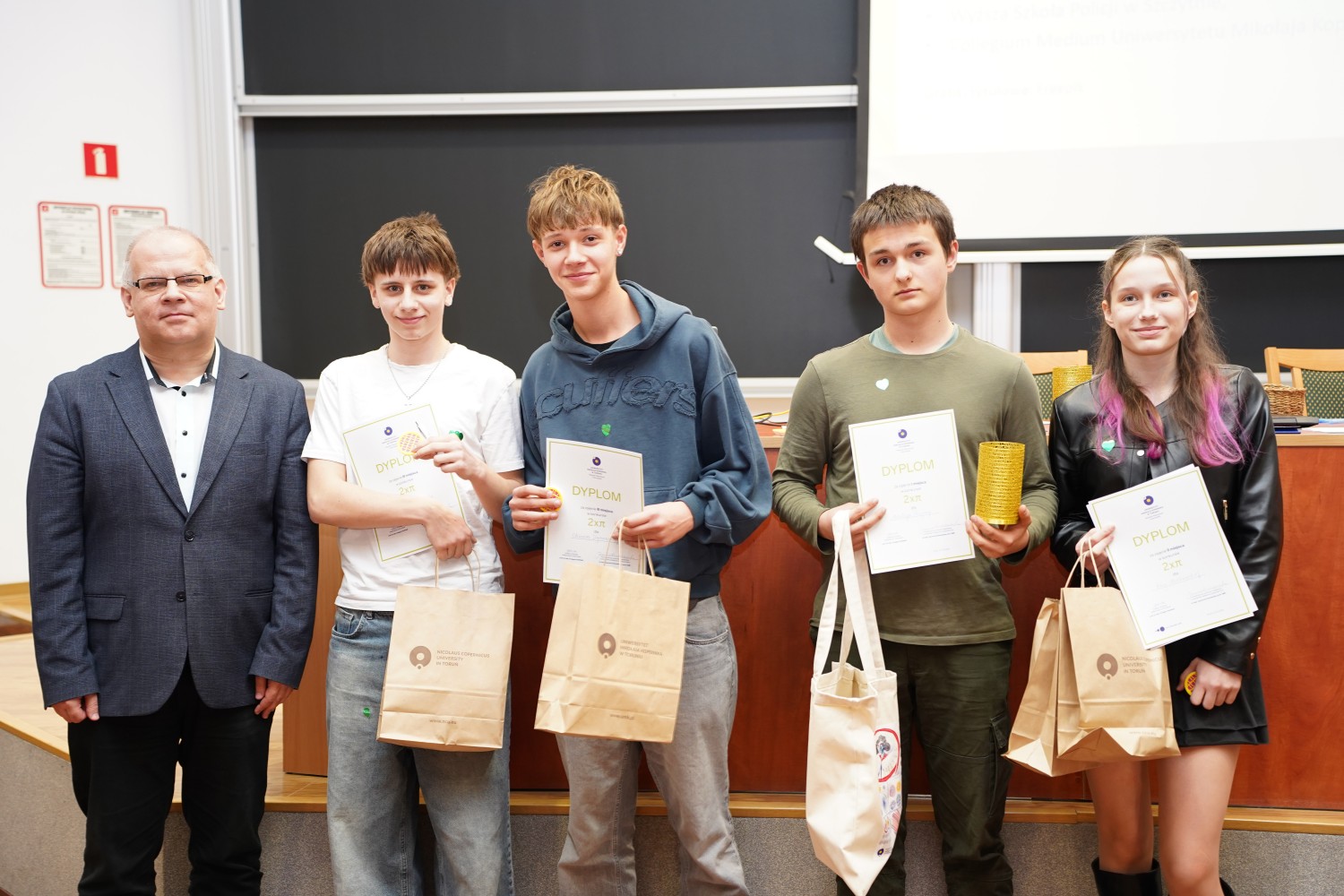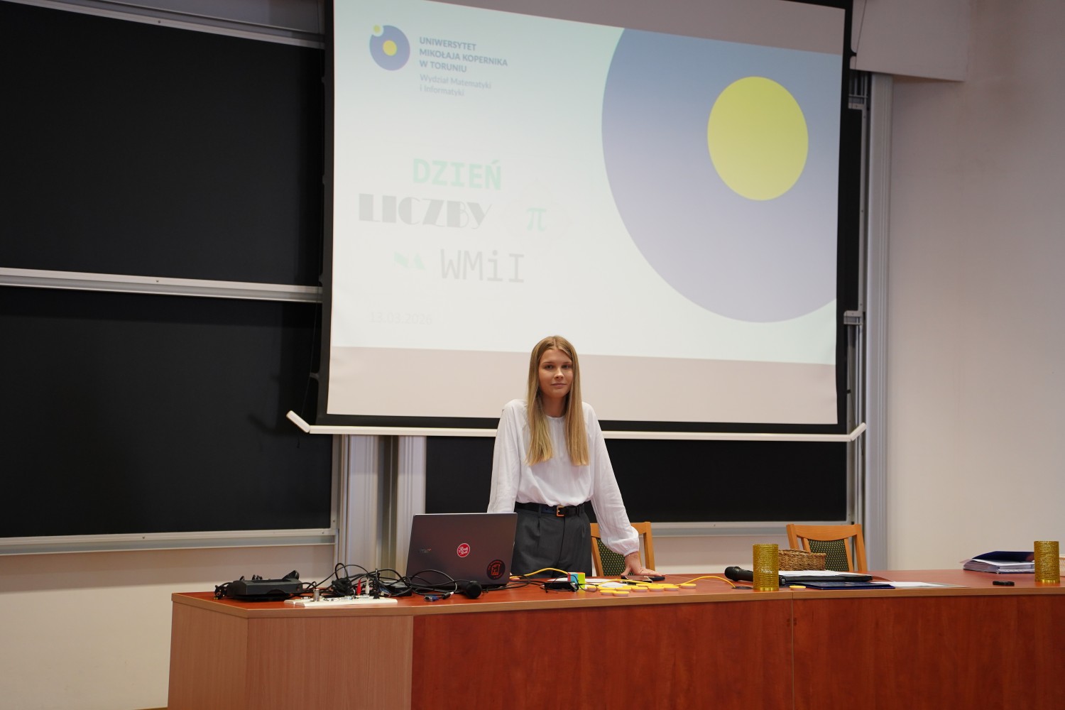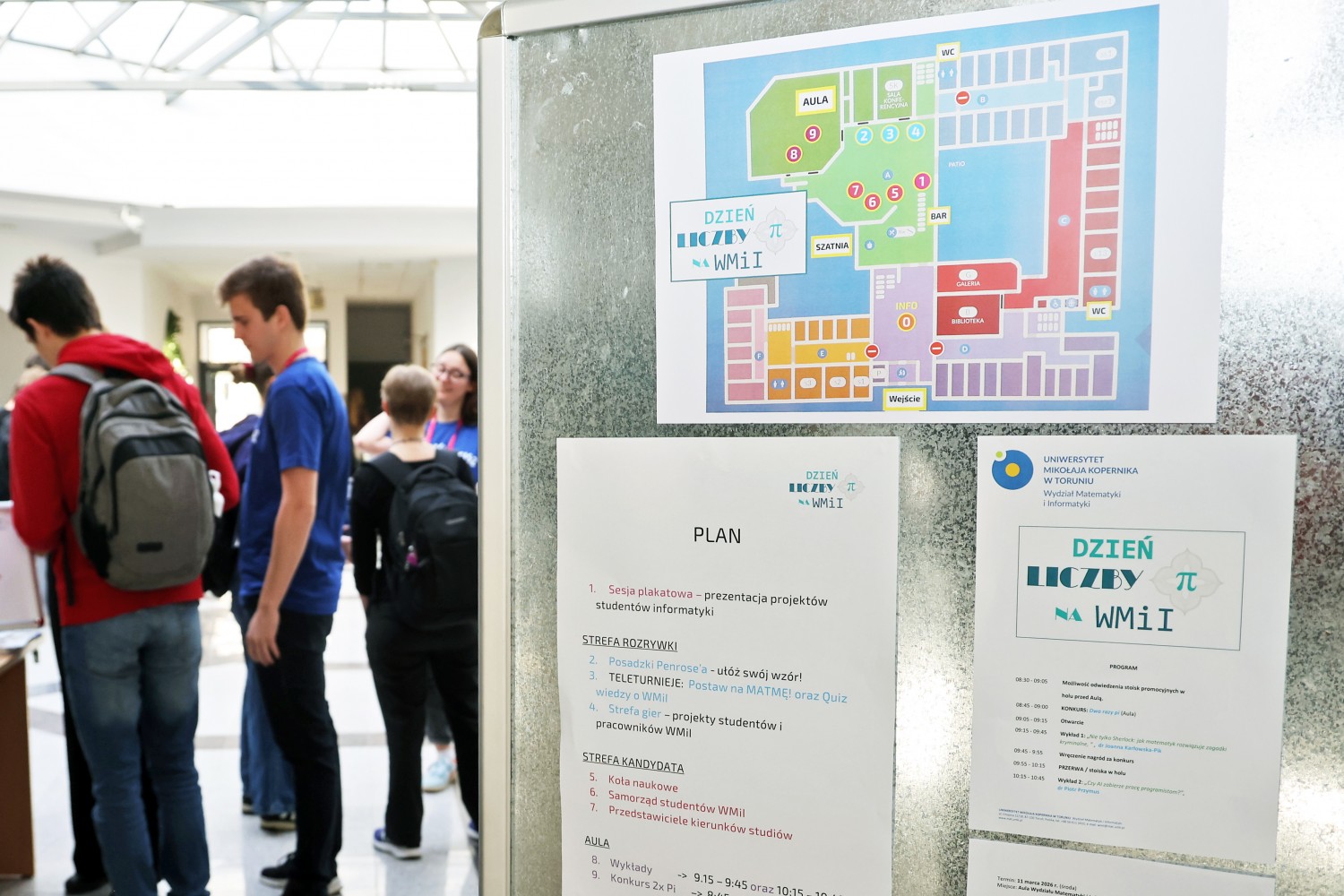 Wydziałowe obchody Dnia liczby pi odbyły się na Wydziale Matematyki i Informatyki UMK w dwóch edycjach: 11 i 13 marca 2026 r. W obu edycjach wzięło udział ponad 500 uczniów ze szkół ponadpodstawowych z Bydgoszczy, Inowrocławia oraz Torunia. Patronat honorowy nad wydarzeniem ponownie objęła Prorektorka ds. promocji i współpracy z otoczeniem społeczno-gospodarczym dr hab. Joanna Kucharzewska, prof UMK.