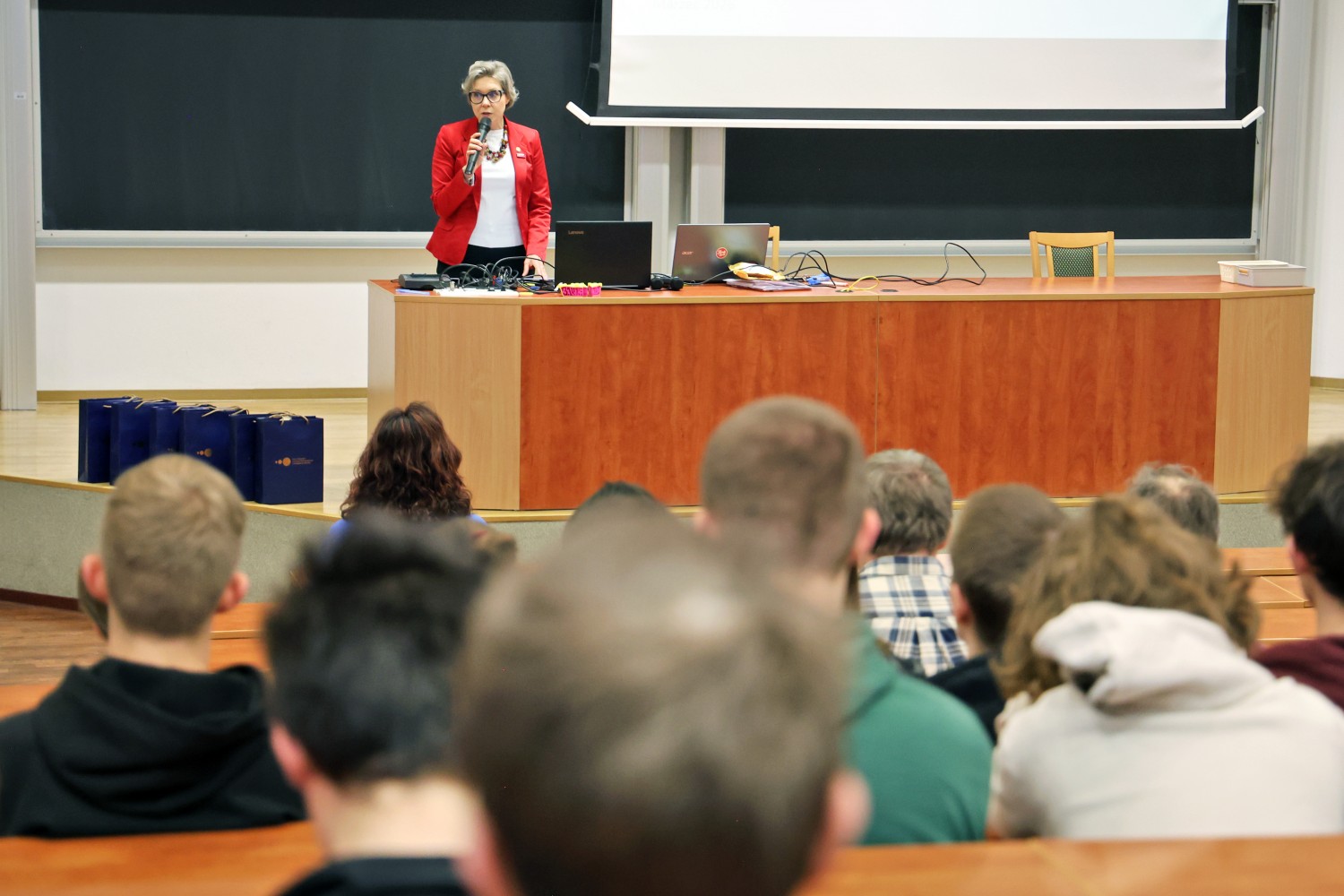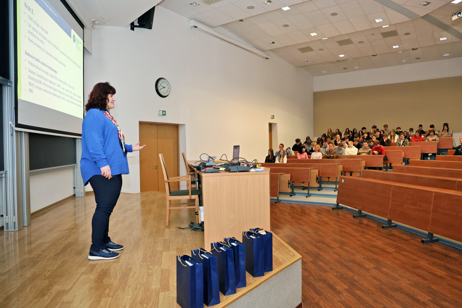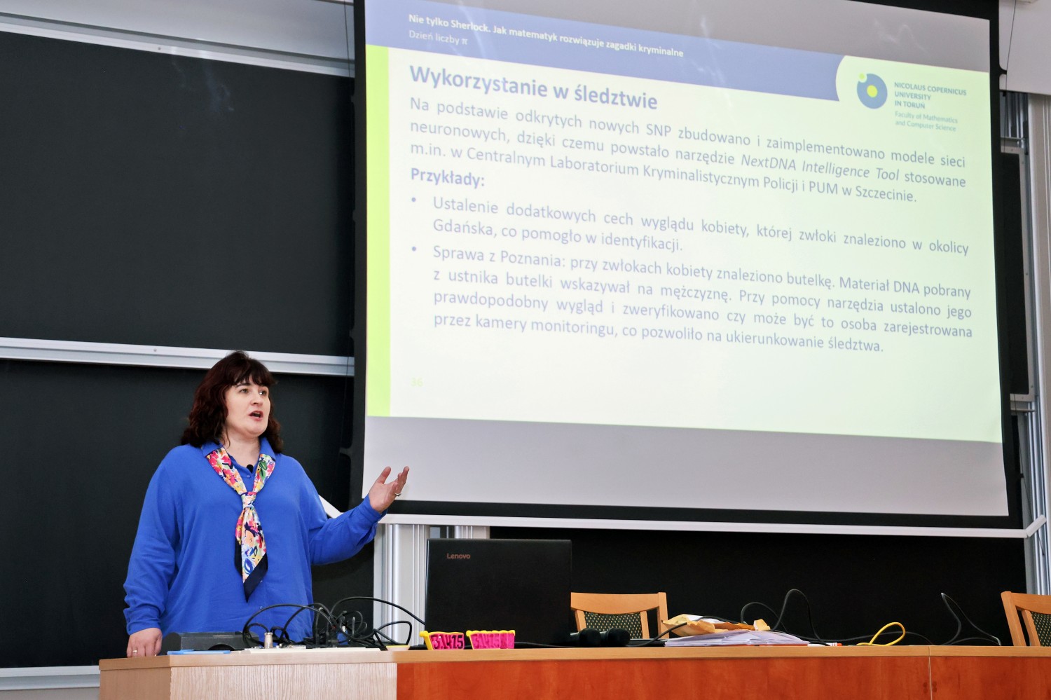 Podczas wydarzenia uczestnicy mieli okazję wysłuchać dwóch ciekawych wykładów. Dr Piotr Przymus w wystąpieniu „Czy AI zabierze pracę programistom?” mówił o rosnącej roli sztucznej inteligencji w programowaniu, pokazując zarówno jej możliwości, jak i ograniczenia, a także zwracając uwagę na kompetencje, które pozostają kluczowe w pracy programisty. Z kolei dr Joanna Karłowska-Pik w wykładzie „Nie tylko Sherlock: jak matematyk rozwiązuje zagadki kryminalne” przybliżyła uczestnikom tajniki swojej pracy, opowiadając w jaki sposób matematyka może wspierać genetykę i kryminalistykę, pomagając w rozwiązywaniu rzeczywistych zagadek kryminalnych.